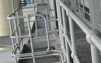 護(hù)欄的組成部分:立柱-扶手-欄桿-彎頭-封頭-管座-踢腳板。